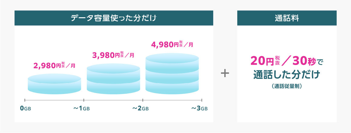 | 通話料 | 30秒/20円(税抜)で利用分が加算 | ||
